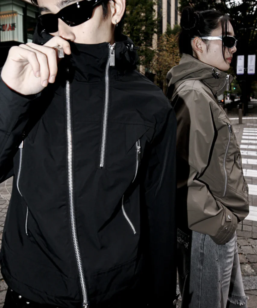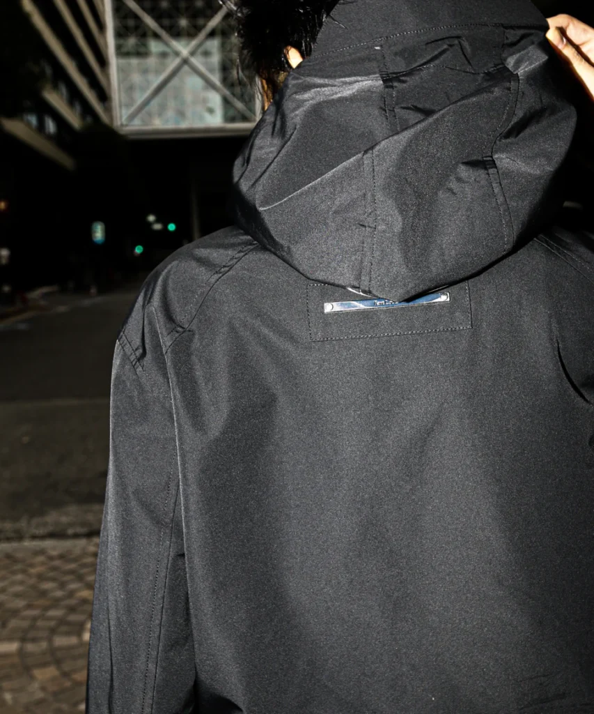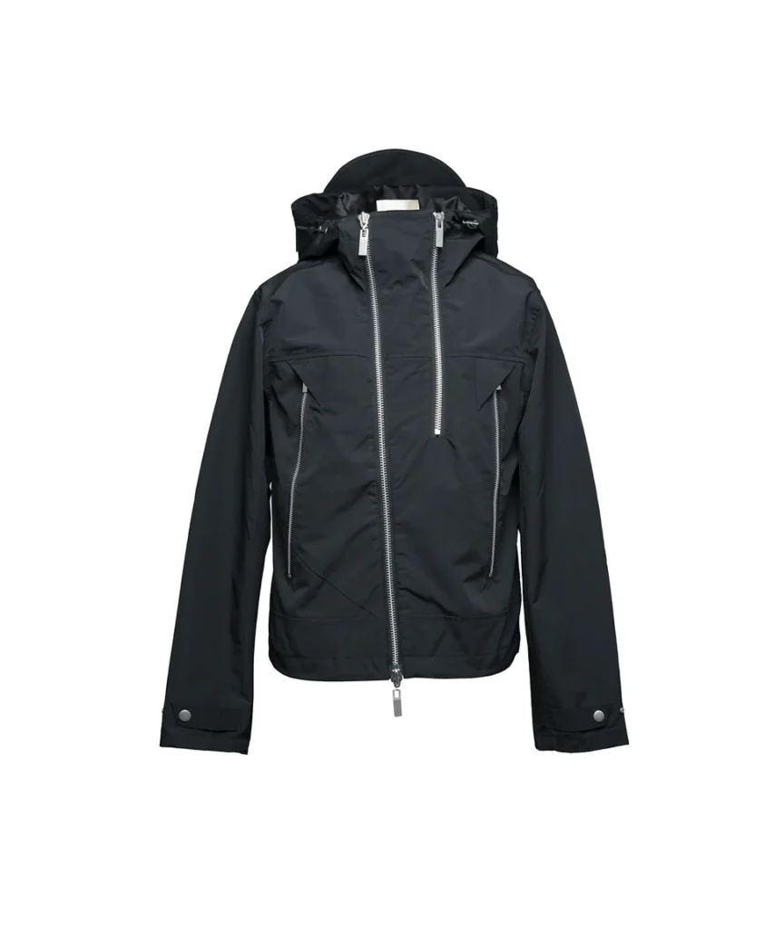 -デザイン- 短丈のボディにボリュームのある袖を組み合わせ、モードなシルエットを演出。ツバ付きのフードと裾のドローコードでシルエット調整が可能なため、機能性とデザイン性を両立しています。 実用的なディテールと構築的なフォルムが融合した、アクティブかつ洗練された印象のテクニカルブルゾンです。